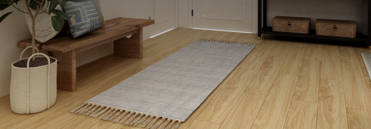 Clean regularly with a hardwood‑safe cleaner; avoid excess water.